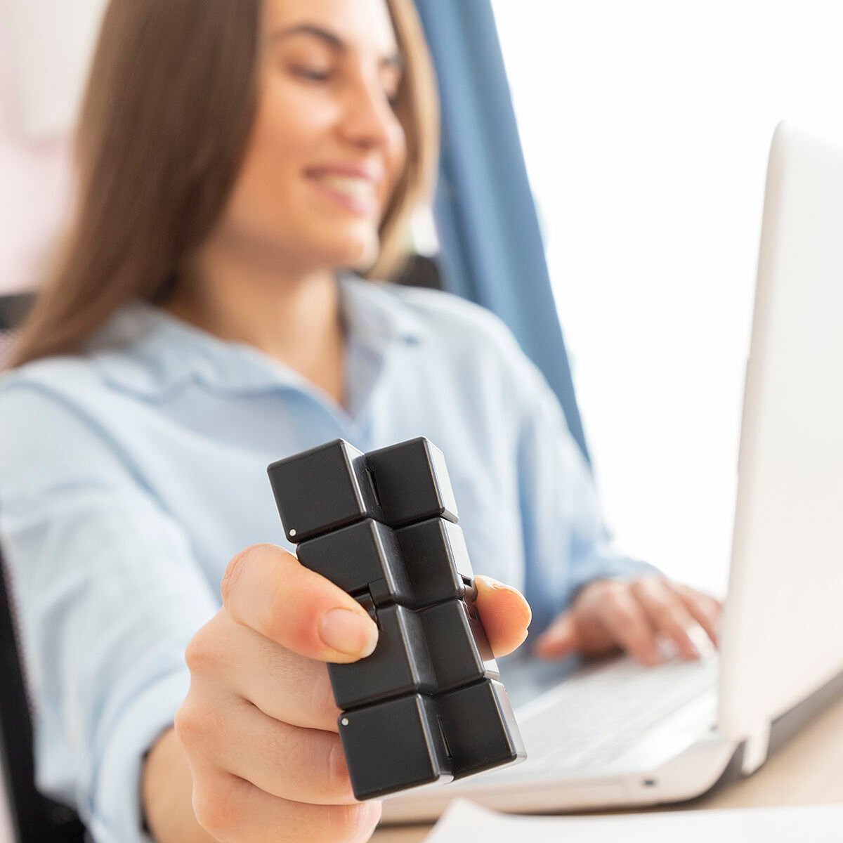 • Wszechstronność zastosowania: Kostka Antystresowa Nieskończoności Kubraniac sprawdzi się zarówno w domowym zaciszu, jak i w przestrzeni biurowej, ułatwiając pracę zdalną przez poprawę koncentracji i koordynacji.