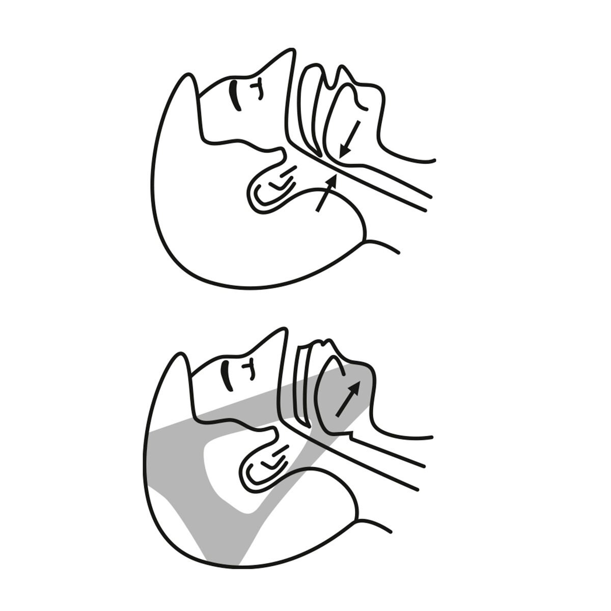 • Wspieranie naturalnego oddychania: Pomaga utrzymać prawidłową pozycję szczęki, co ułatwia oddychanie przez nos i zapobiega chrapaniu.